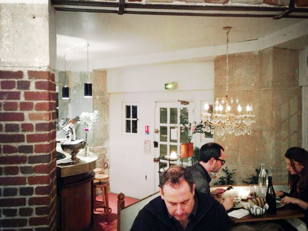 C’est peu de dire que l’endroit ne ressemble à rien, car rien a davantage de gueule. Les lampes de Serge Mouille déjà vues chez les copains, le lustre chiné, le mobilier presque spartiate. Mais il ne faut pas prendre de haut Michael Greenworld et Simone Tondo pour autant. Non seulement pour leur CV – Gazzetta, Rino, Caffè dei Cioppi, Chateaubriand etc. -, mais aussi parce qu’on se demande bien comment ils ont pu susciter une telle unanimité. Flanqués de l’impeccable Erika, sommelière transfuge du Chateaubriand, le tandem marche littéralement sur l’eau. Un état de grâce que je vois comme mérité, même si le principe de la carte blanche finit par en énerver plus d’un, dont votre serviteur.